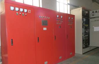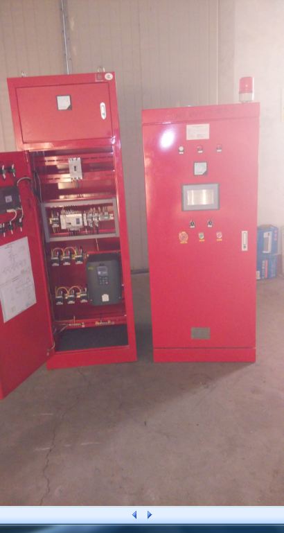 CX-XF消防巡检成套设备是由主回路检测及消防水泵低频低压试水两部分组成,能完成对主控回路检测及水泵的低频自动试水。主回路监测时,主控单元智能控制器输出指令,逐一对主回路断路器、接触器进行监测,所有监测返回信号返回到智能控制器。主回路监测完成后,主控单元智能控制器发出下一个试水指令,依次对消防水泵进行低压试水,出水口的压力和流量值经过计算后与预先设定的水泵性能参数作比较,如果低于正常工作下线,发出声光报警,显示屏弹出警告信息。同时完成故障的上传,通知相关值班人员进项检修,确保消防设备万无一失。
